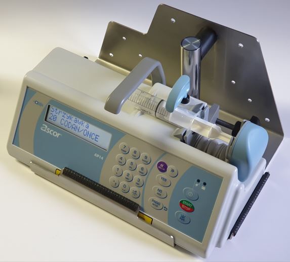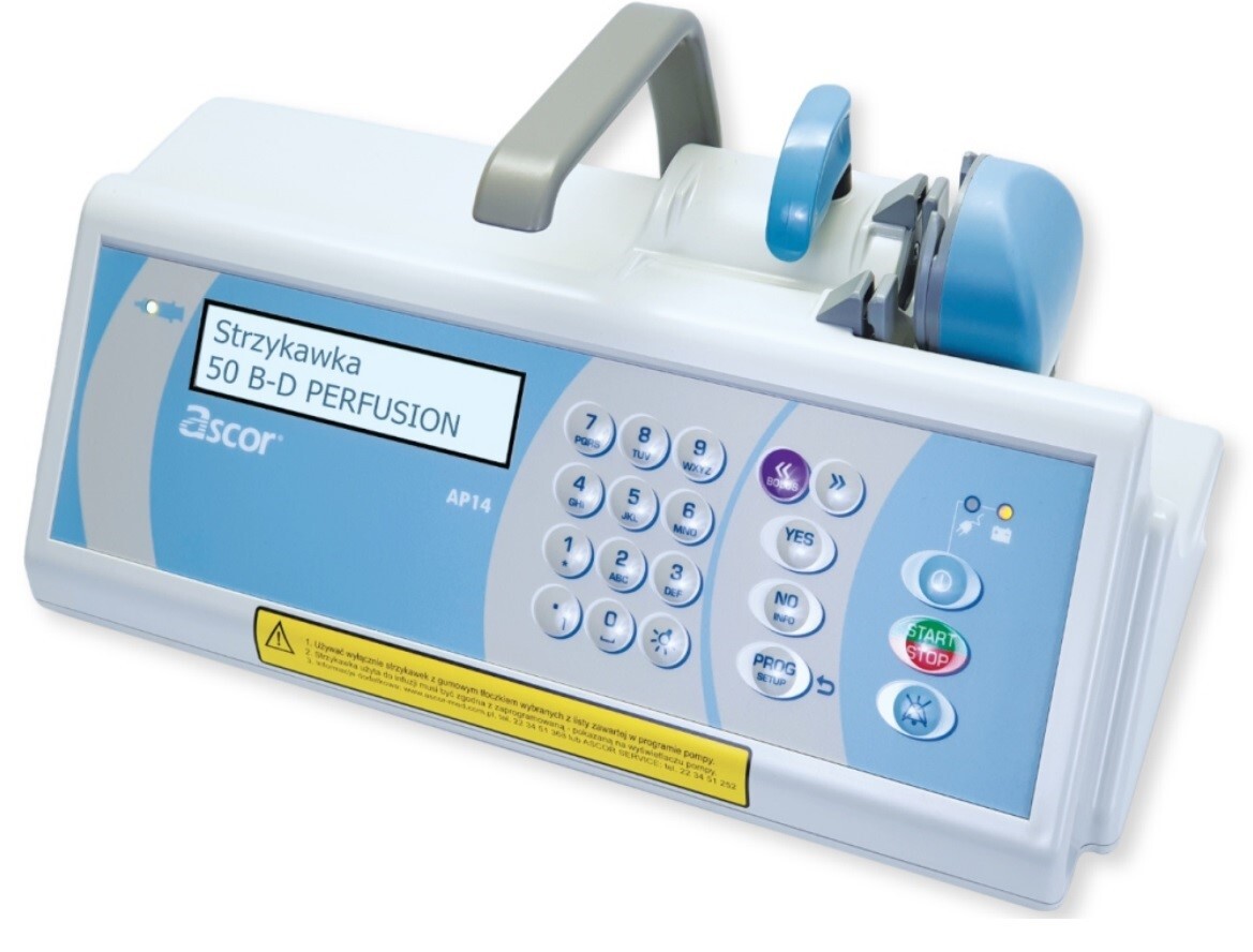 The AP14 single-syringe pump is designed for use in anesthesiology, intensive care, cardiology, neonatology, oncology, and other hospital departments. The AP14 pump features a very user-friendly infusion parameter programming system, allowing the setting of: rate, rate and volume, rate and time, or volume and time.