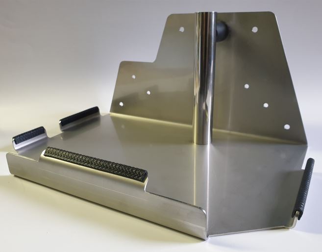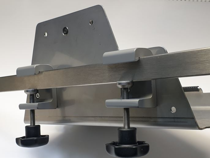 Polish-made syringe pump mounting bracket, made of stainless steel, designed for stable and safe mounting of AP24+ syringe pumps in ambulances.